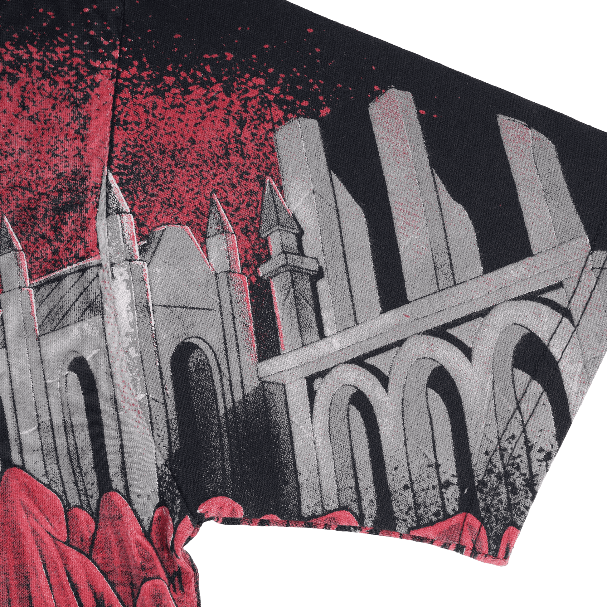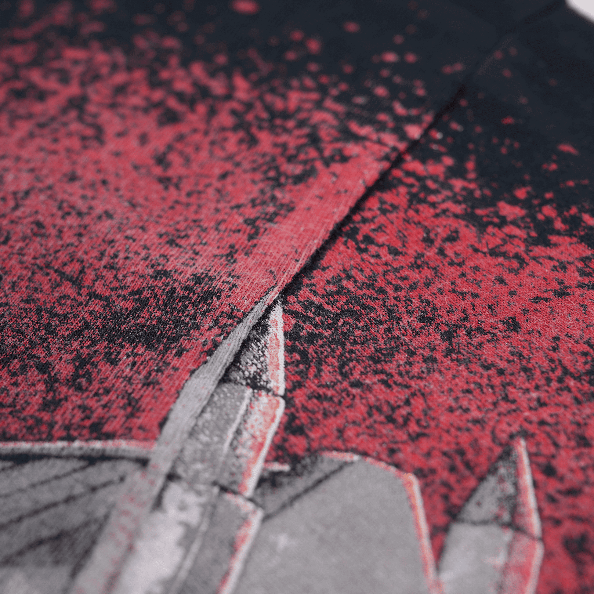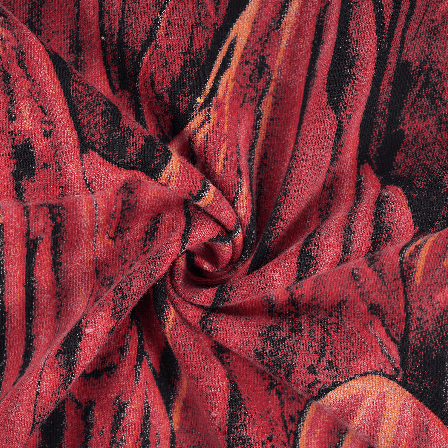 100% cotton [210gsm | | | bio-washed | | | softest handfeel producible], all-over giga-size'd "discharge" print (fusing naturally with the fabric) ⇄ non-plasticky ⇄ super cushy/comfortable to the touch.
