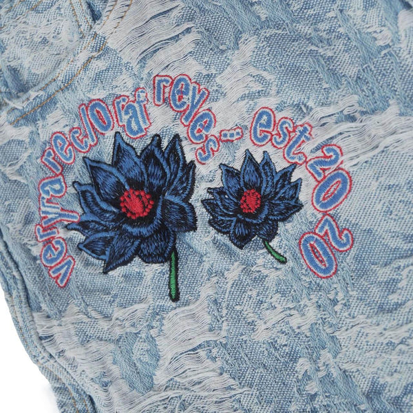Designed by Raf Reyes: in fashion's intricate world, the 🌹🥀 denim jacquard embodies ᵥresilience, turning thorns into ᵥroses, chaos into art ~ a Black Lotus signals fresh starts from the ᵥruins of the past 𖥸~ this unique trio adorns bold individuals, moving beyond normal to embrace the Extraordinary 💫 [...] in its threads, they share a universal truth: ᵥreal innovation arises from destruction, beauty from ashes ~ destined to shine in VERYRARE™ ✨˚𑁍 ⋆ ⋆。°✩.