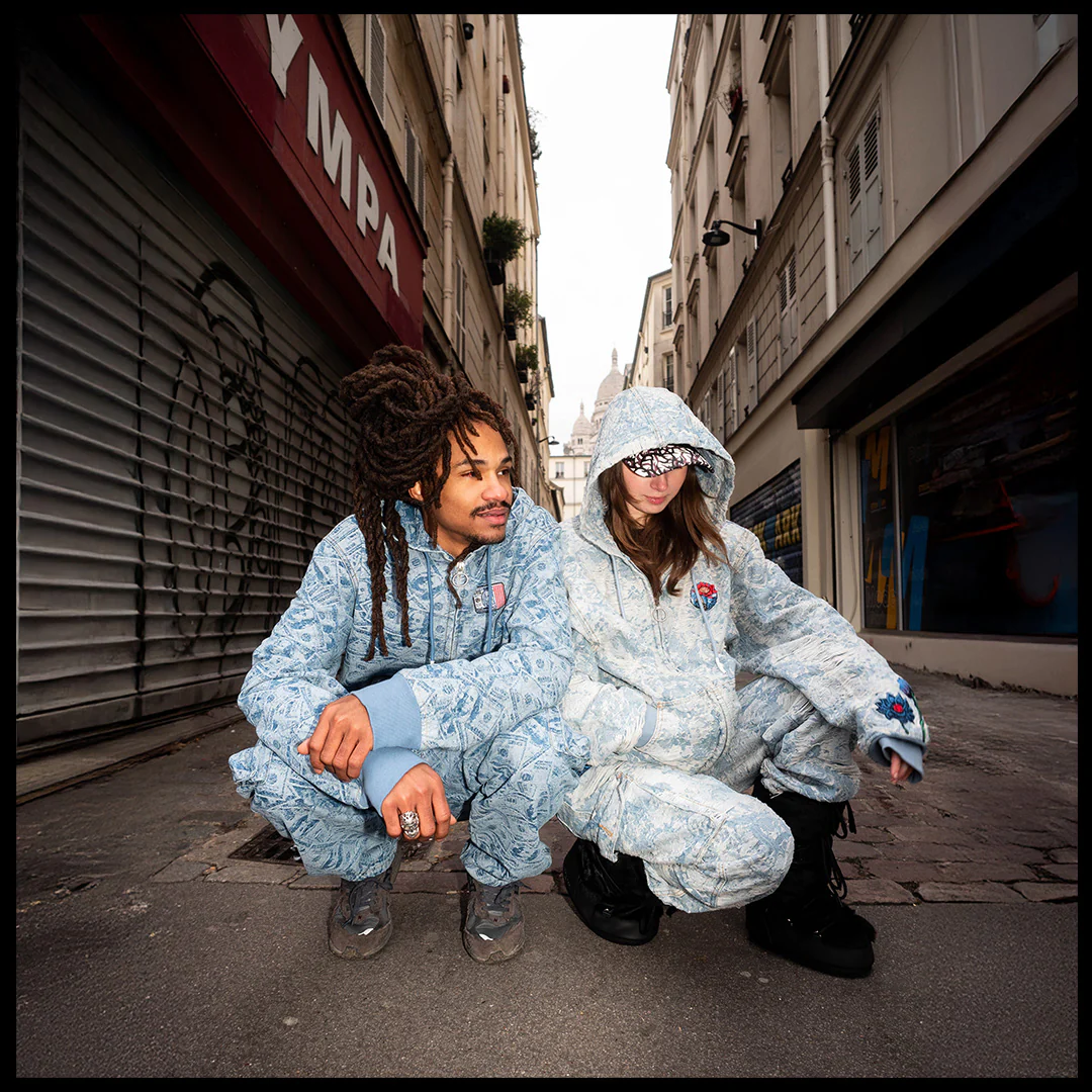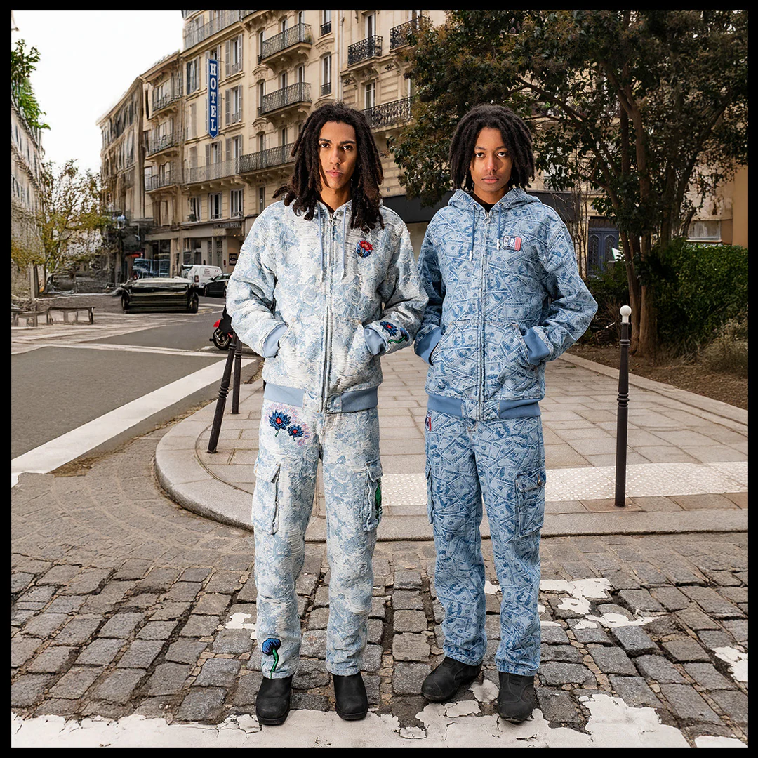 Tech specs: ⁽†⁾ᵥremarkable couture-inspired fil coupé jacquard denim (100% cotton | | | 475gsm/14oz) ~ VERYRARE ""flowers tapestry"" motif incorporates a subtle texturing (& softness), while the fabric has been worked & dyed to give a worn-in effect 🪡 [...] custom-molded gunmetal branded buttons, embroideries @ front & back 🌹~ this piece can be worn with matching hoodie for a total look 👖.