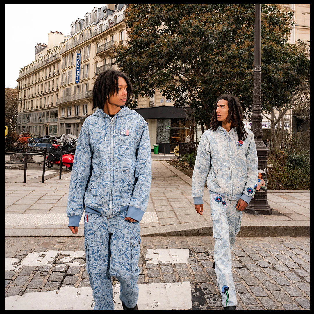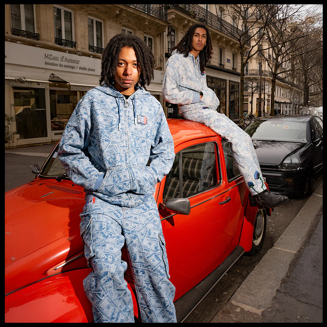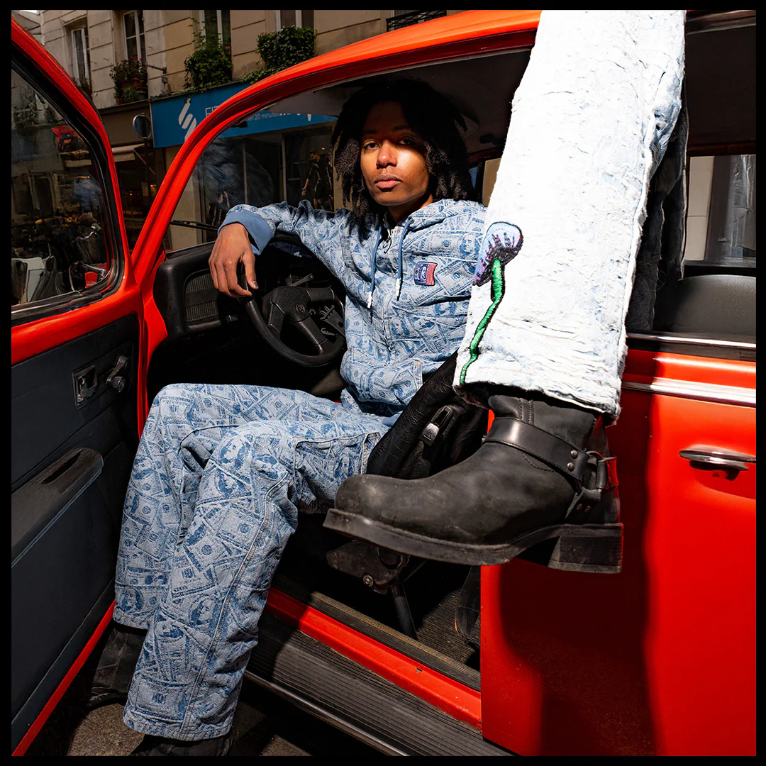 Designed by Raf Reyes: issa bold statement of opulence [💵] ~ crafted with intricate detailing, the jacquard denim is covered in a sea of hundred-dollar bill patterning, screaming luxury & dope-ness 💸✨ [...] the fabric’s rich texture (& meticulous design) embody the allure of ca$h (and success), making it perfect for those who want to wear their fortune on their sleeve 💰🤑.