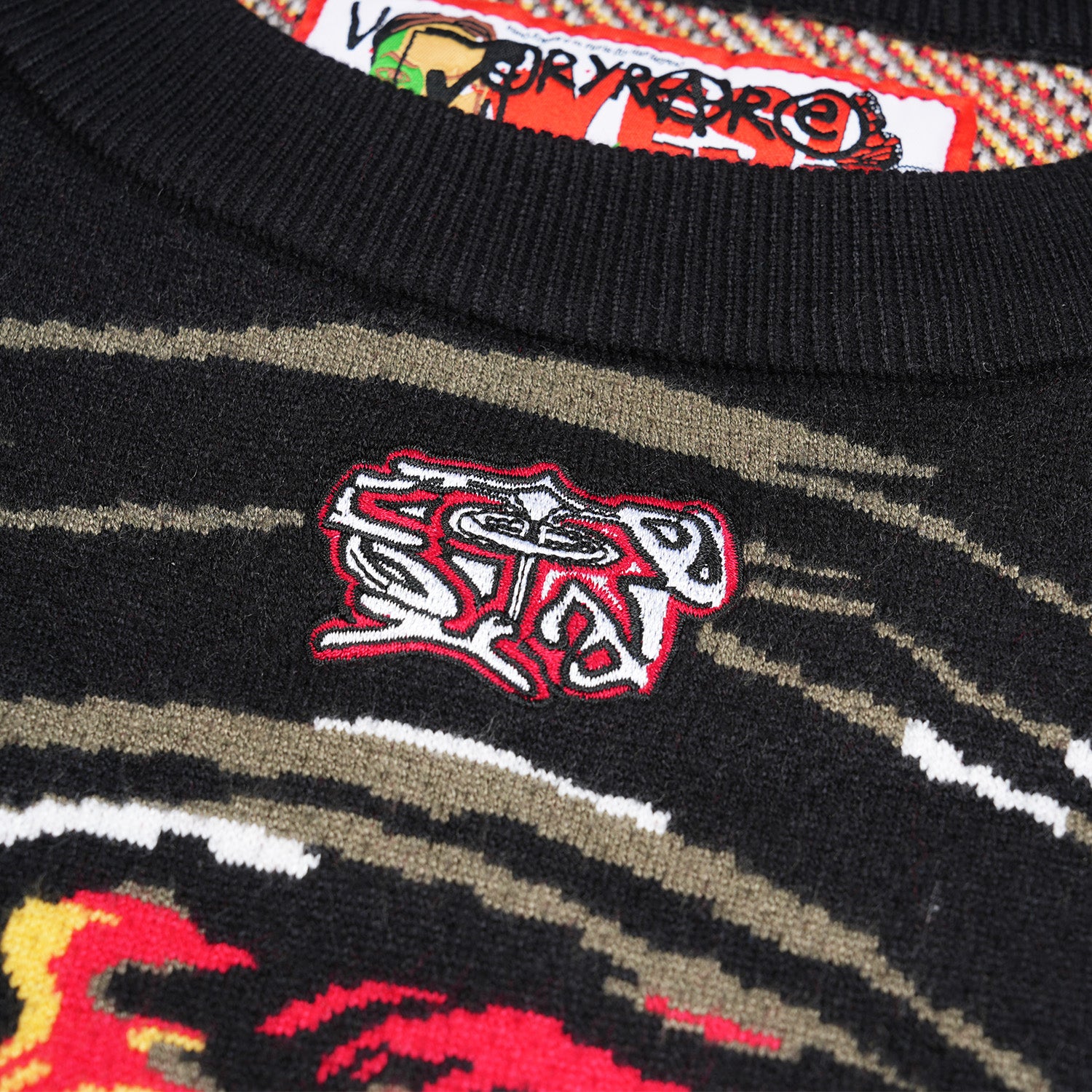 Tech specs: 14gg birdseye jacquard knit (composition: 50% viscose, 30% polyester, 20% nylon), embroidery @ front, tubular/tonal hems.