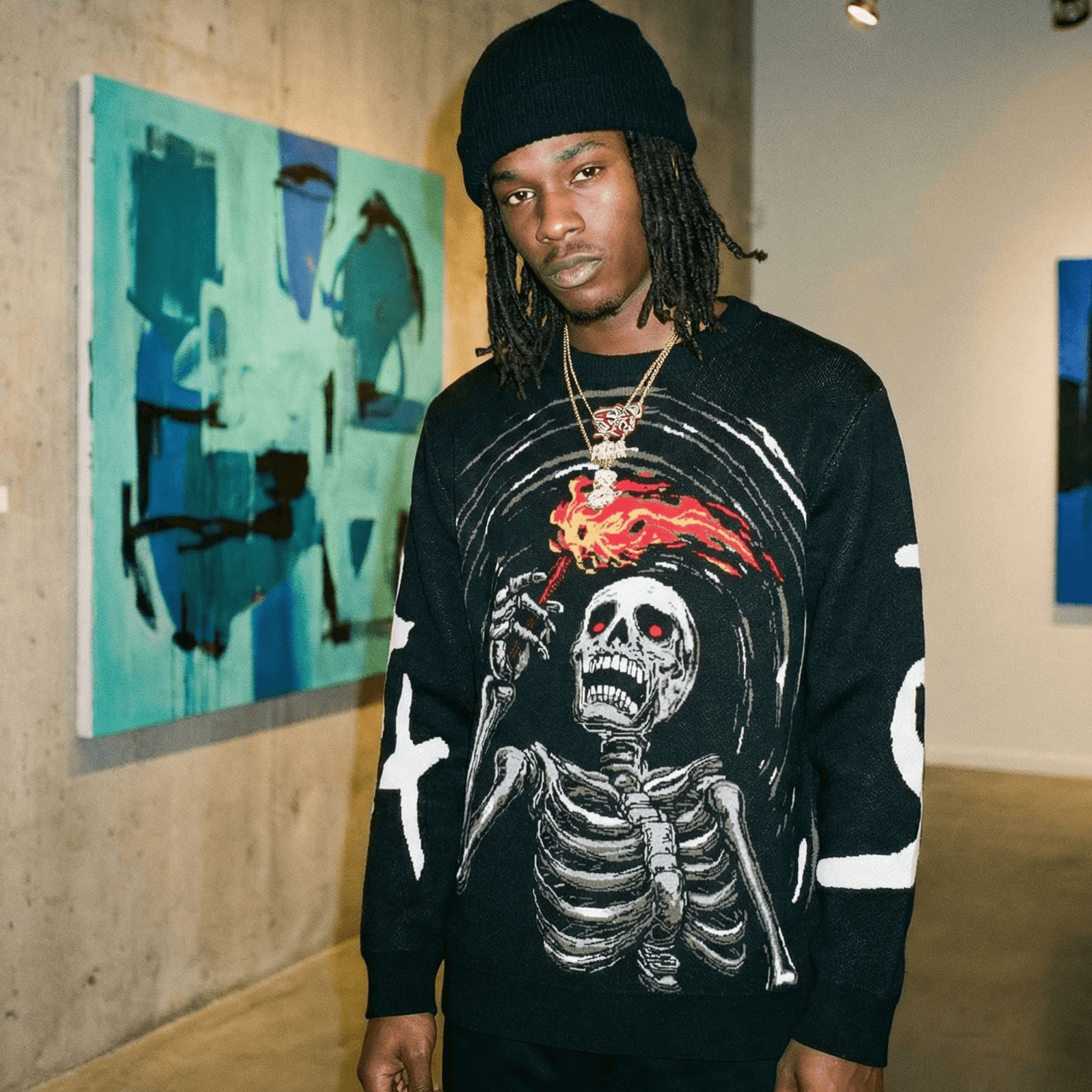 • skeleton sparks flame in the void ⇄ six bullets deep, still grinning — death mocked, fear burned to ash 🖤🏴