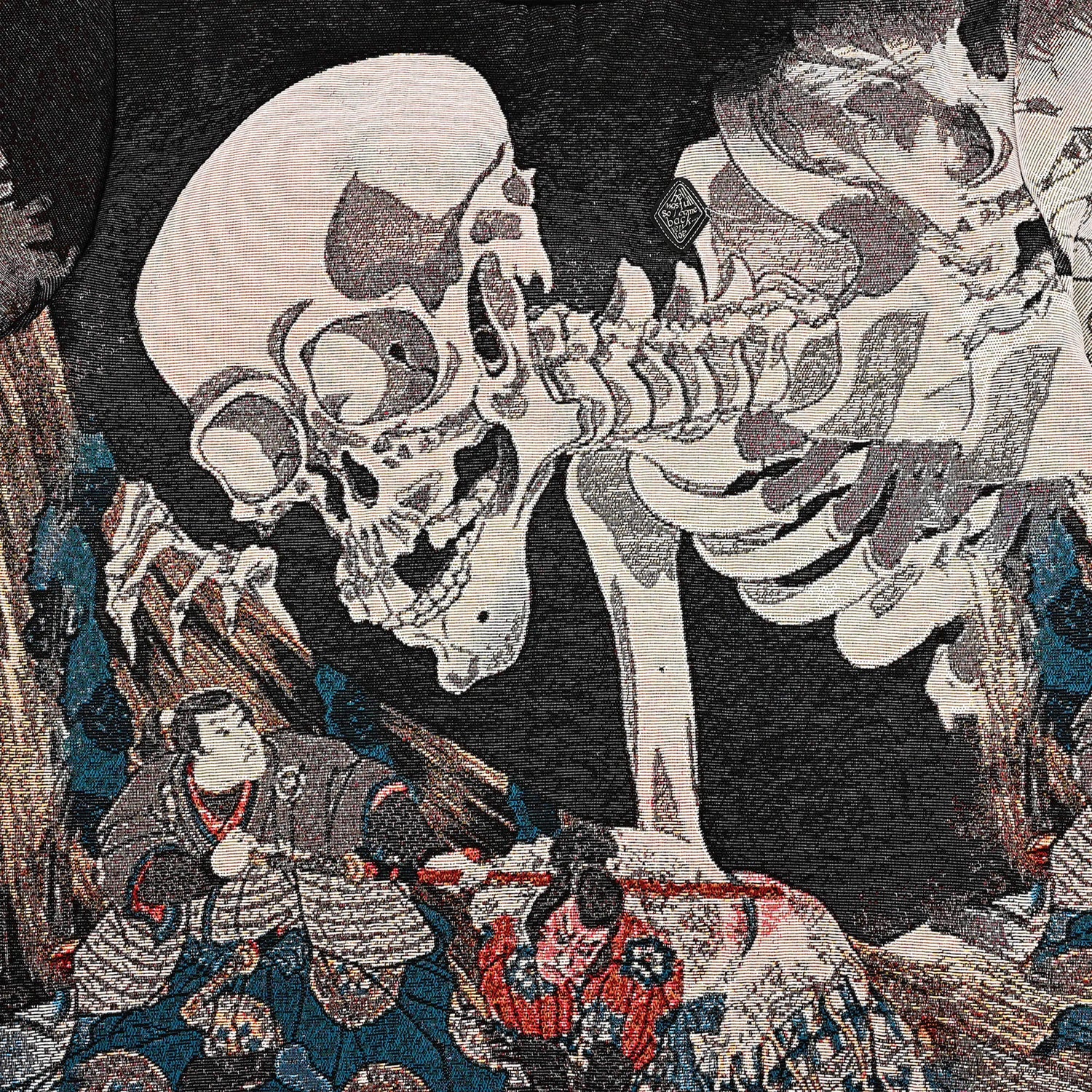 Designed by Raf Reyes: japanese folklore tells of gashadokuros, blood-craving spirits born from battlefields' defuncts & victims of starvation ⚔️~ Kuniyoshi’s artwork features princess Takiyasha and two samurais confronting the colossal skeleton Gashadokuro, harnessing supernatural forces to protect her castle 🏯: issa testament to tha human spirit conquering formidable foes, honoring the Japanese mythology’s LEGACY +++ it's an artist’s stand against darkness, truly magical and, above all, supernatural 🙏📿.