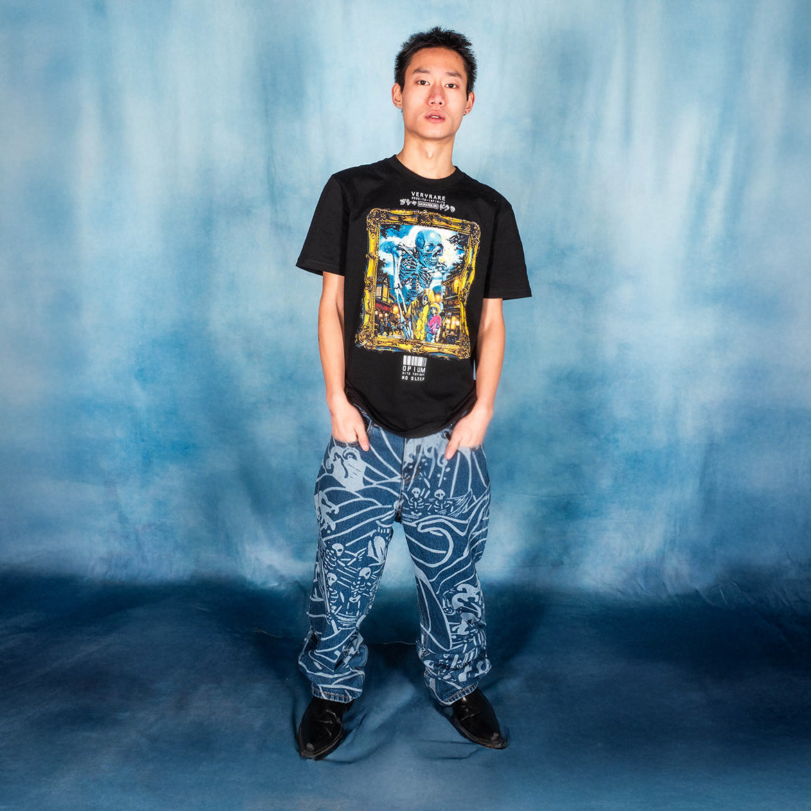 Designed by Raf Reyes: skeletal crews adrift in a sea that never forgives 🌊 waves crash like tsunami ⇄ boats borderline shatter but the dead row on ⛵️ in the eye of the storm, a big blue whale — part myth, part punishment — curves through laser-etched current 🙏 ˖ this ain’t no shipwreck shit, issa cVRsed loop ⇄ sum eternal voyage of the damned where death has no port, no anchor ⚓️:: just tides & torment 🥀💀☠️~ welcome to the afterlife’s undertow, where bones don’t sink — they ᵥresurface.