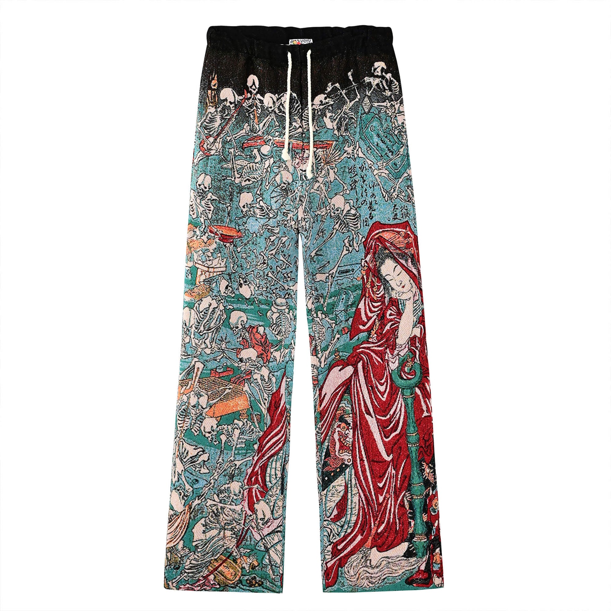 Designed by Raf Reyes: Kawanabe Kyōsai's 'Jigoku Dayu' portrays a haunting scene with a seductive yet damned woman, surrounded by eerie dancing skeletons representing human vices 💀... Kyōsai's detail & color create a surreal and nightmarish atmosphere ⚰️🦇~ the painting delves into the consequences of indulgence (and the struggle between desire & damnation 📿) ⇄ 'Hell Courtesan' ✦ challenges viewers to confront their inner demons [and] ✦ reflects on the human condition in a chilling & thought-provoking manner ~