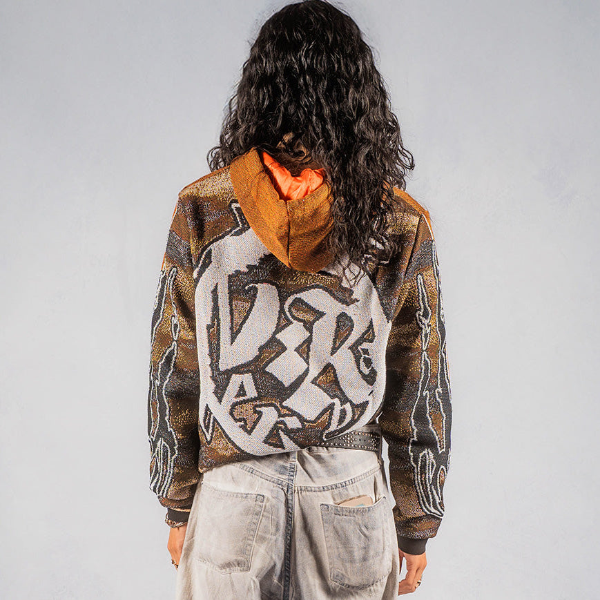 Tech specs: premium jacquard woven tapestry fabric (410gsm polycotton), satin silk lining (inside *fully*), enamel-coated eyelets, tight-knitt’d drawcords (with compression/coated matte tips) | | | 100% wool ribbings @ bottom & sleeves (w/ intarsia logo at cuffs) ~