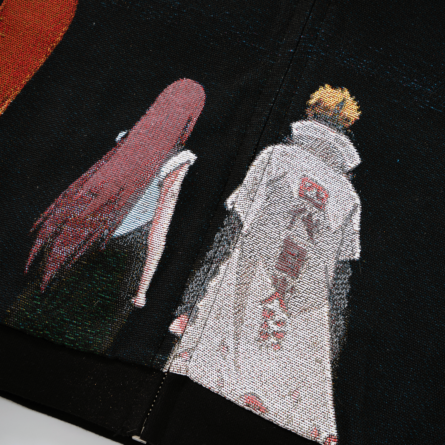 premium jacquard woven tapestry fabric (410gsm polycotton), embroidery (on hood), zip closure, 925 silver circle branded custom-molded puller, satin silk lining (inside *fully*), enamel-coated eyelets, tight-knitt’d drawcords (with compression/coated matte tips) | | | 100% wool ribbings @ bottom & sleeves (w/ intarsia logo at cuffs) ~