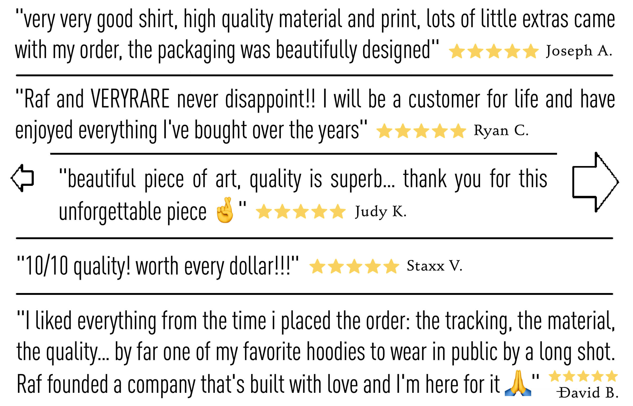 • our releases are extremely limited and rarely restocking: when it’s gone it’s gone.