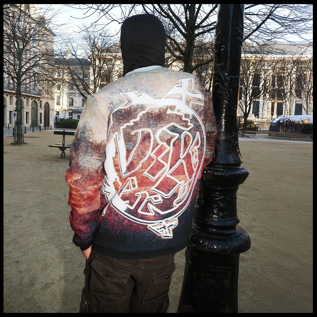 Tech specs: premium jacquard woven tapestry fabric (410gsm polycotton), lining (50% cotton, 40% rayon, 10% viscose) | | | leather appliqué'd with silver embossed-debossed '[infamous']-patch, embroidery @ front & back, 'Pegasus' metal tag (+ enamel color pouring/coating innit) at back, 100% wool ribbings @sleeves ~