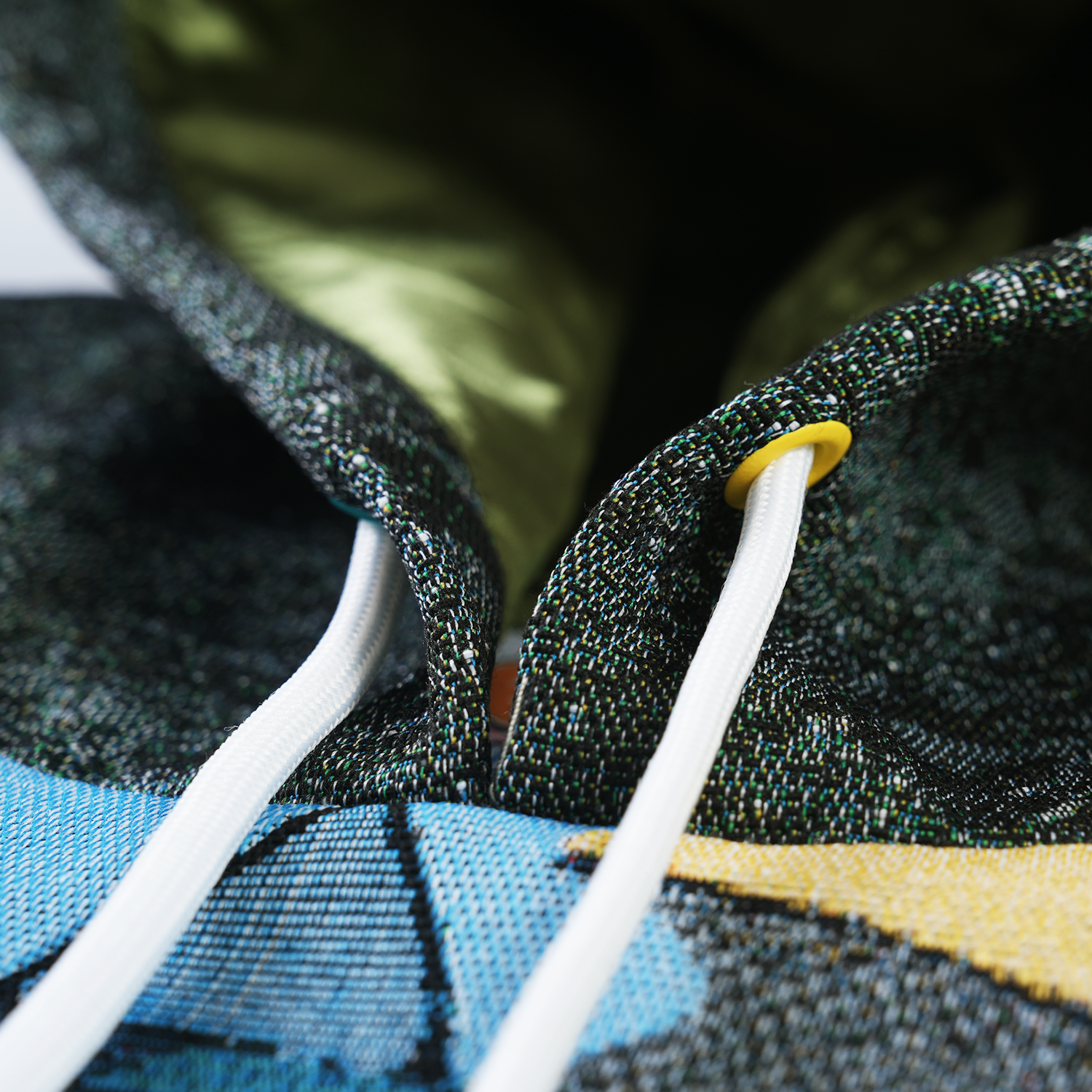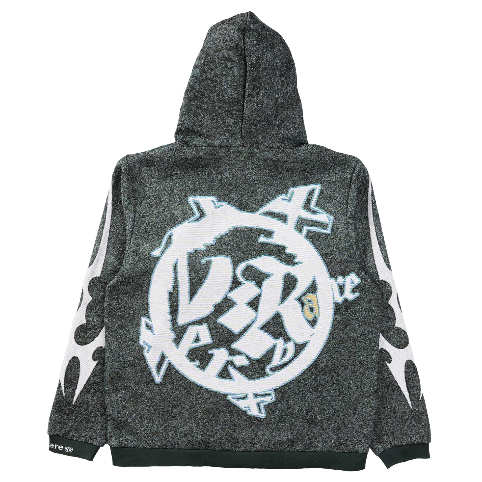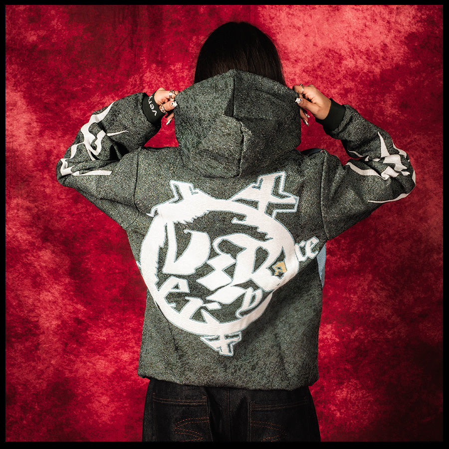 premium jacquard woven tapestry fabric (410gsm polycotton), satin silk lining (inside *fully*), enamel-coated eyelets, tight-knitt’d drawcords (with compression/coated matte tips) | | | 100% wool ribbings @ bottom & sleeves (w/ intarsia logo at cuffs) ~
