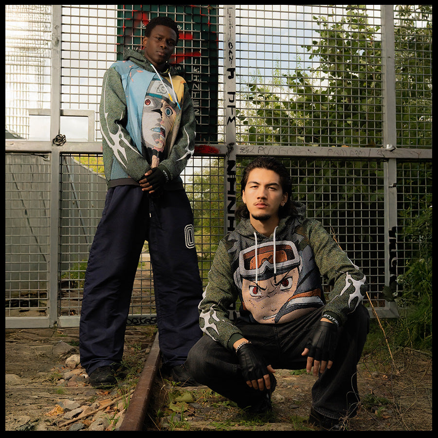 Designed by Raf Reyes: Naruto and Sasuke — fused in desperation during the Land of Waves arc | | | one unleashing hard af chakra, the other wielding a bloodline curse ⇄ this frame isn’t just fear/panic — it’s fate :: two paths split from the same wound | | | VRARE™ | slicin' the moment in half & stitchin' it shut again [...] brotherhood, war, contradiction: one's chasing the light, one swallowed by shadow.