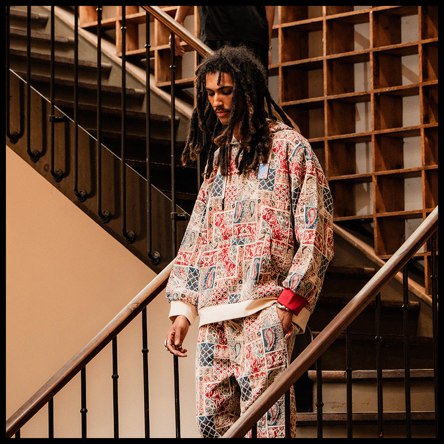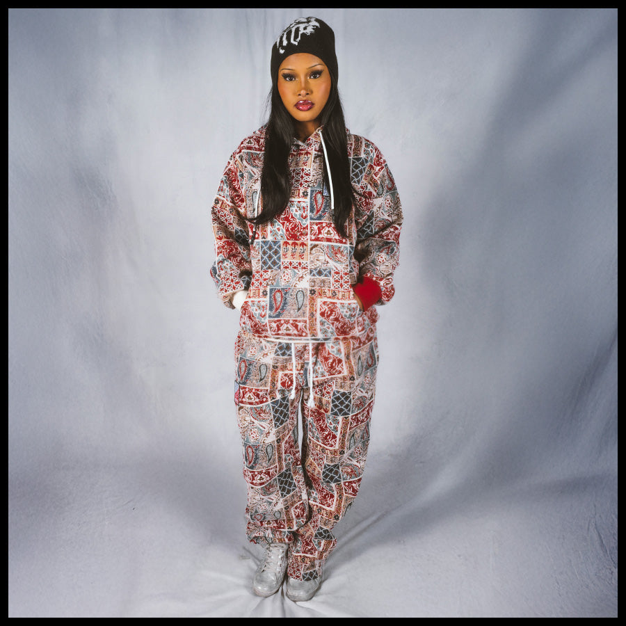 Designed by Raf Reyes: pVRe paisley warfare hoodie, remixing heritage into ᵥrebellion 😤~ the patchwork bleeds reds, blues, and white/earthtones ___like a prayer ᵥrug torn in a street brawl ⚔️--- every panel tells its own twisted story: teardrops & lattice grids cut-and-sewn together like fragments of cultVRe and memory :: it’s east-meets-wild-style, sacred stitched into the secular ⇄ a woven mosaic for the traveler with no map — VERYRARE artwear a borderless flag for the battle-hardened//spirit-marked 🧿🔥.