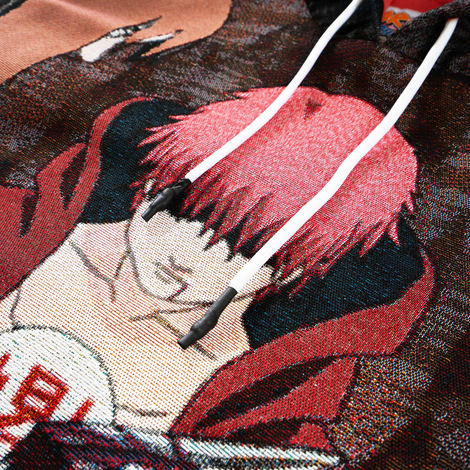 premium jacquard woven tapestry fabric (410gsm polycotton), embroidery (on hood), modal (50% cotton, 40% rayon, 10% viscose) lining (inside *fully*), enamel-coated eyelets, tight-knitt’d drawcords (with compression/coated matte tips) | | | 100% wool ribbings @ bottom & sleeves (w/ intarsia logo at cuffs) ~