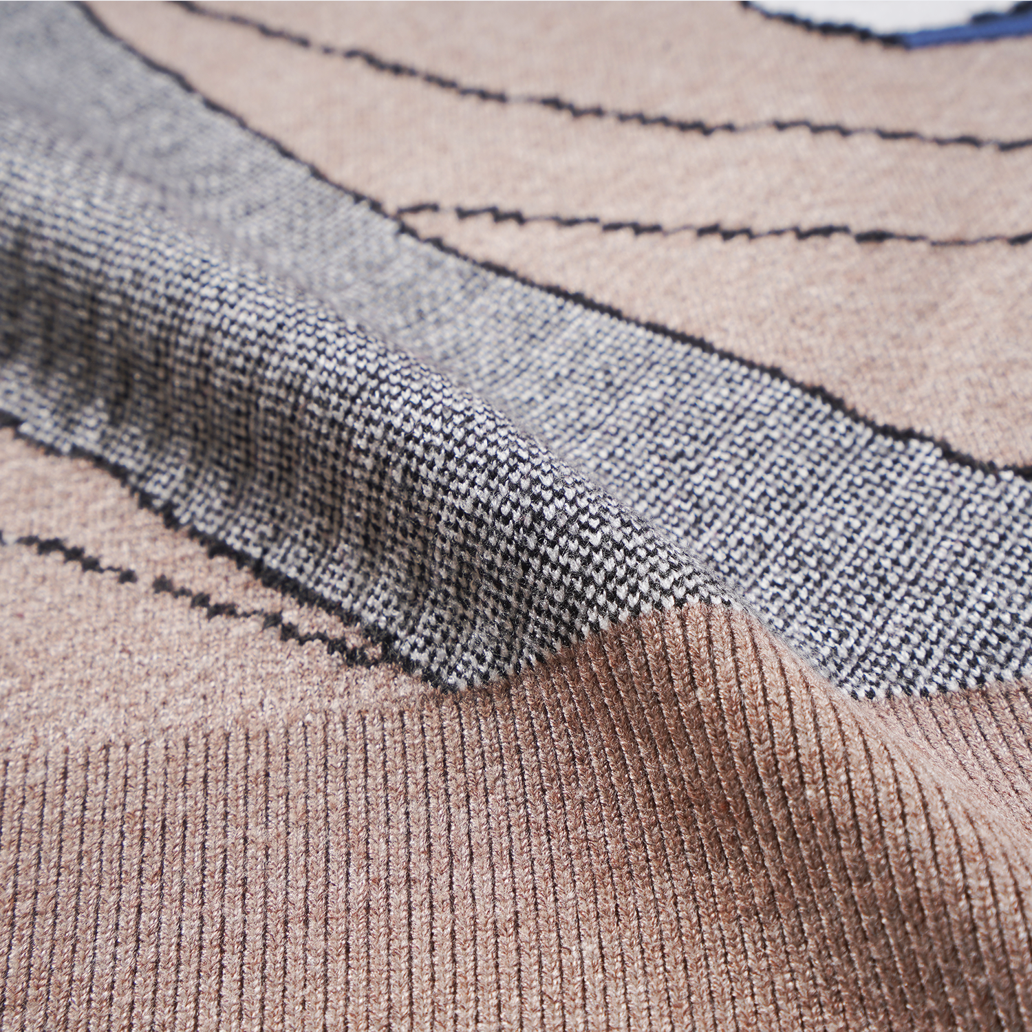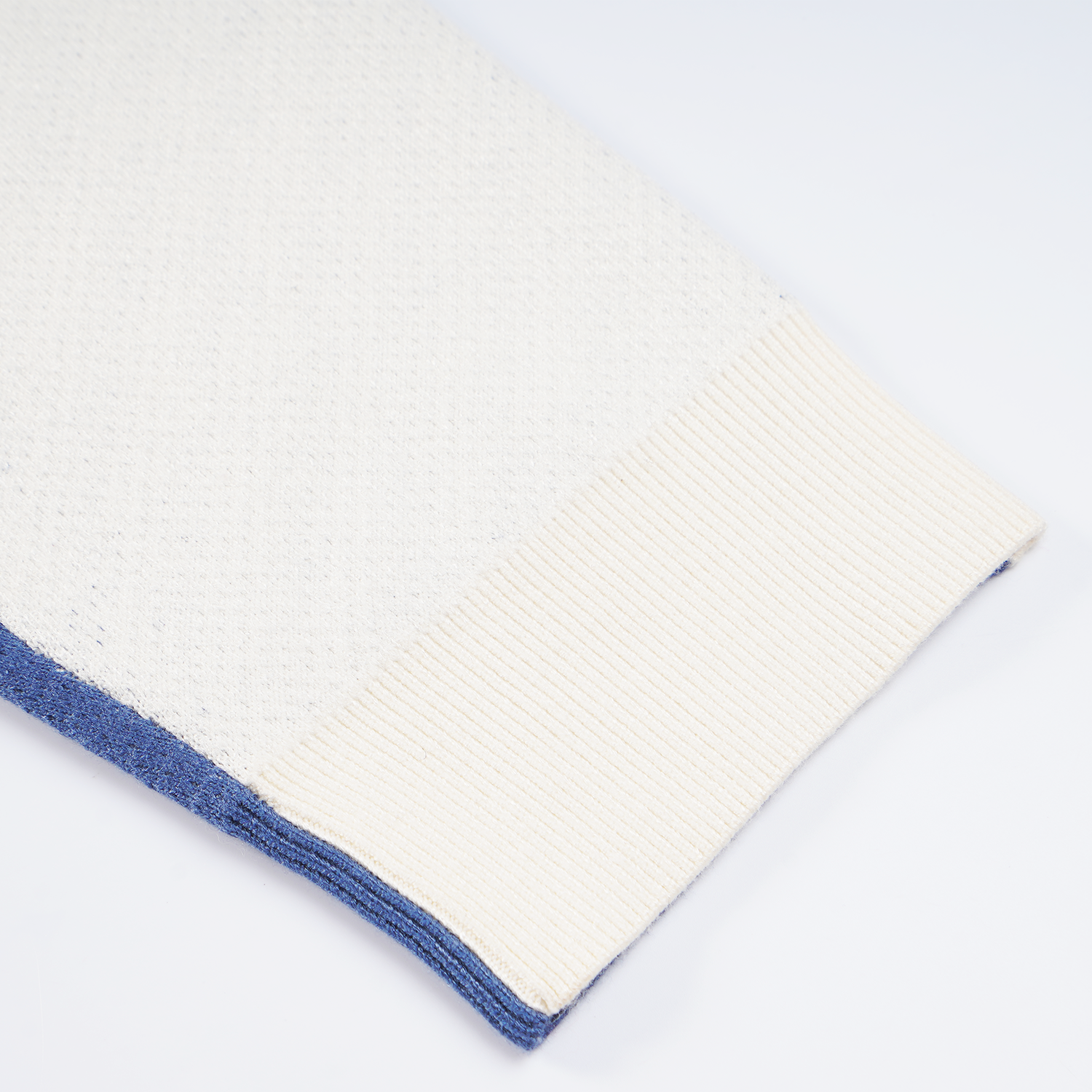 14gg birdseye jacquard knit (composition: 50% viscose, 30% polyester, 20% nylon), embroidery.