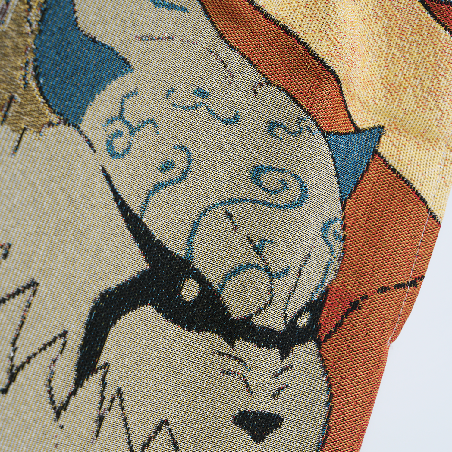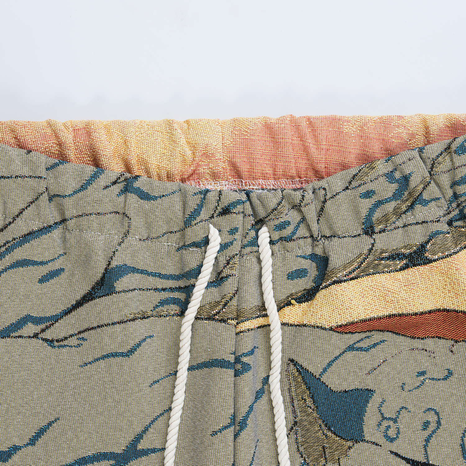 premium jacquard woven tapestry fabric (410gsm polycotton), mini "samurai" 'rope' braided belt-system drawcord +++ lining’s composition: 100% cotton.