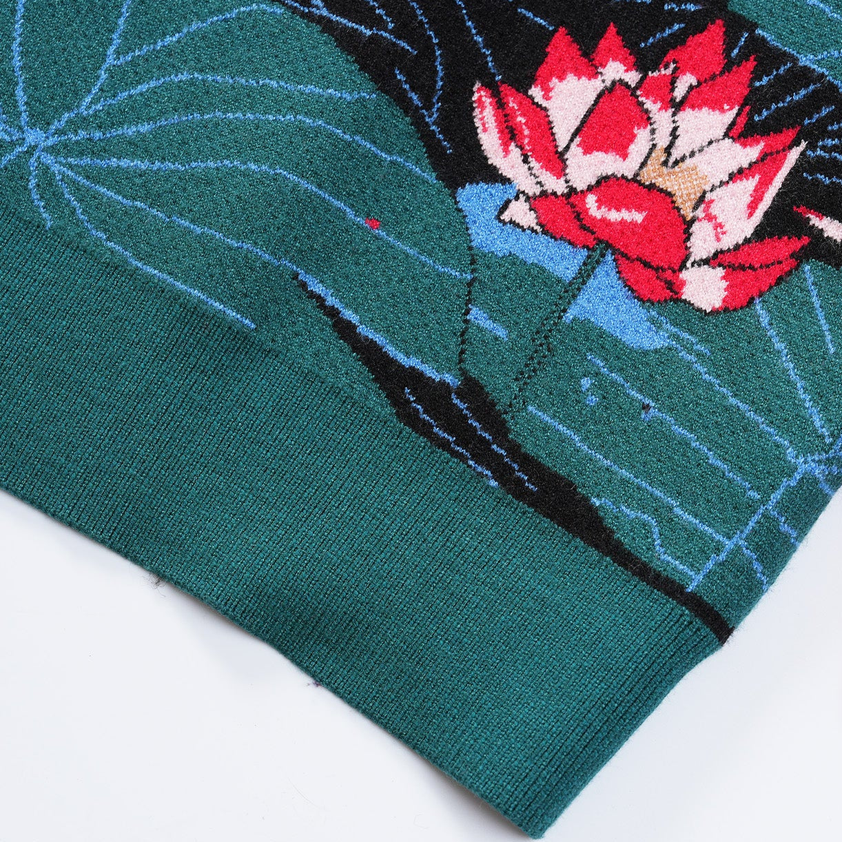 Tech specs: 14gg birdseye jacquard knit (composition: 50% viscose, 30% polyester, 20% nylon), embroidery + real leather appliqué'd with silver embossed-debossed 'Hell-&-Back'-patch (+ tonal thread'd contour'd), tubular/tonal hems.