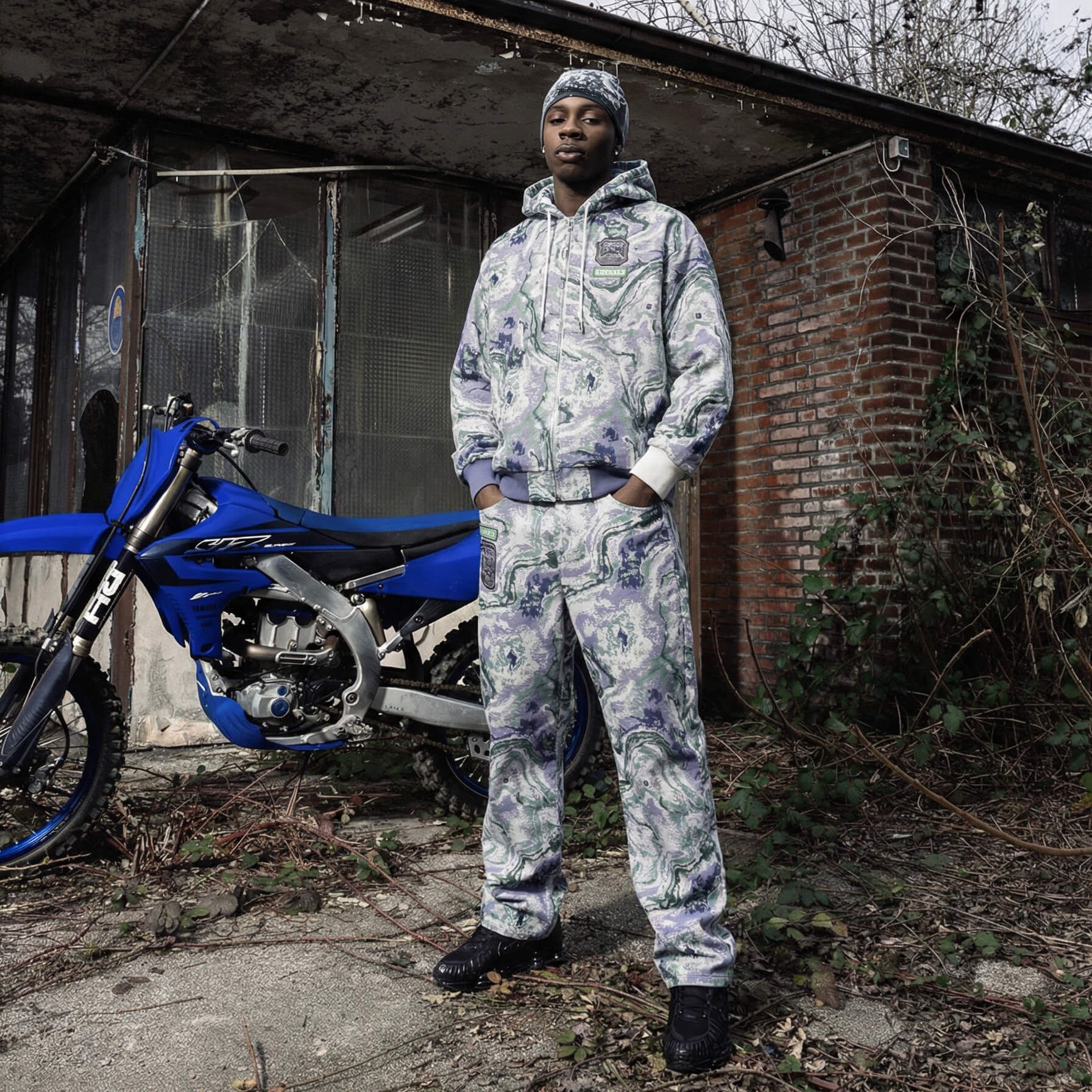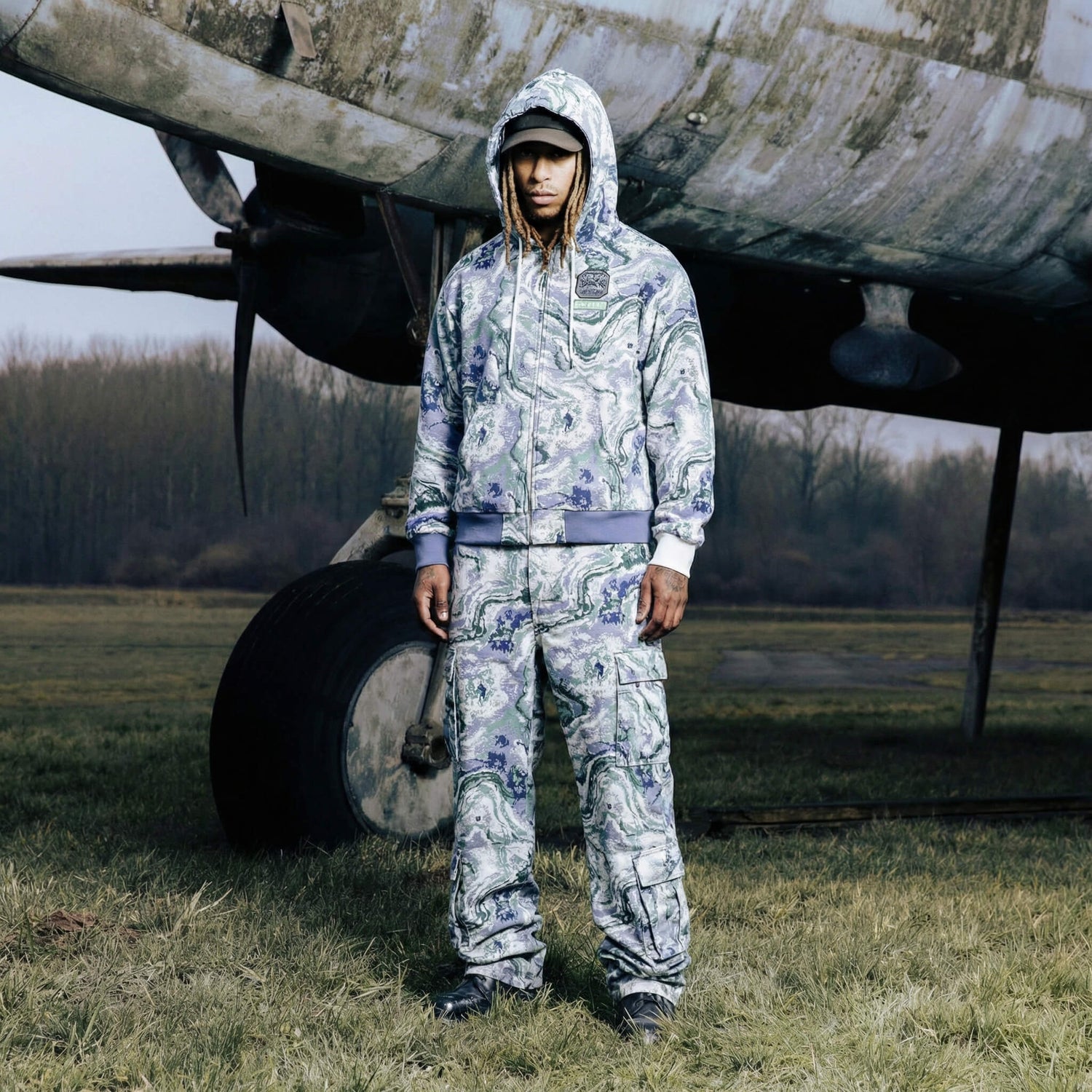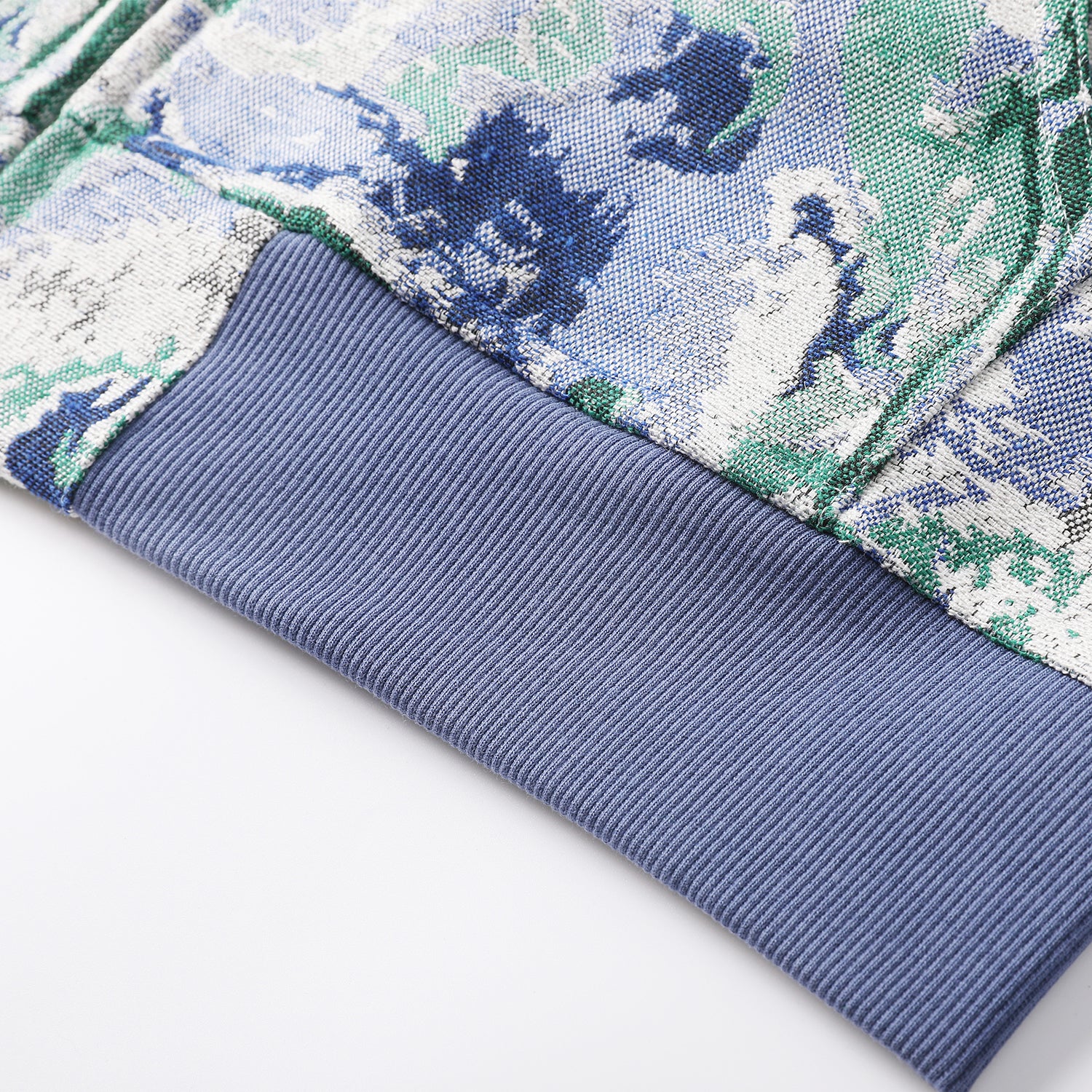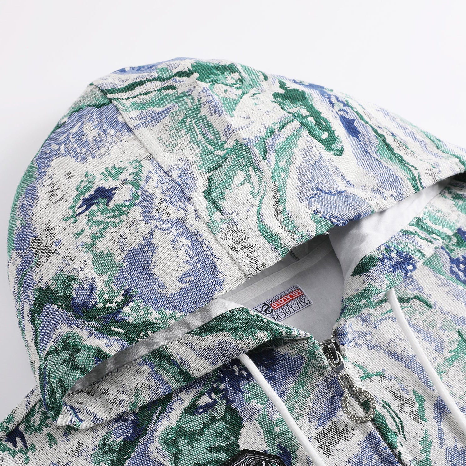 Tech specs: numbered ultra-limited edition, premium jacquard woven tapestry fabric (410gsm polycotton), kangaroo pockets @ front, embroidery, zip closure, 925 silver circle branded custom-molded puller, 100% cotton lining (inside *fully*), enamel-coated eyelets, tight-knitt’d drawcords (with compression/coated matte tips) | | | 100% wool ribbings @ bottom & sleeves | | | this piece can be worn with matching pants for a total look 👖.