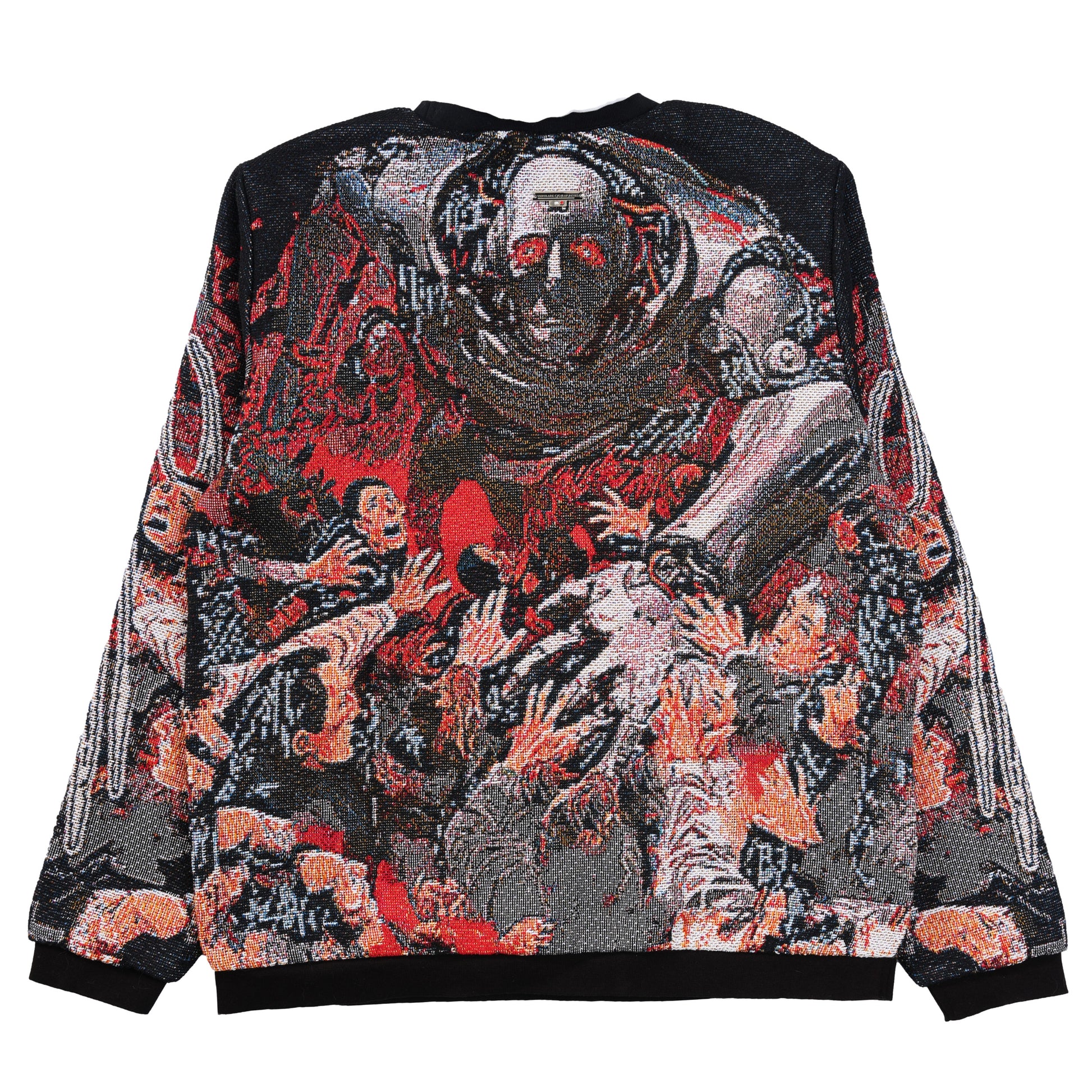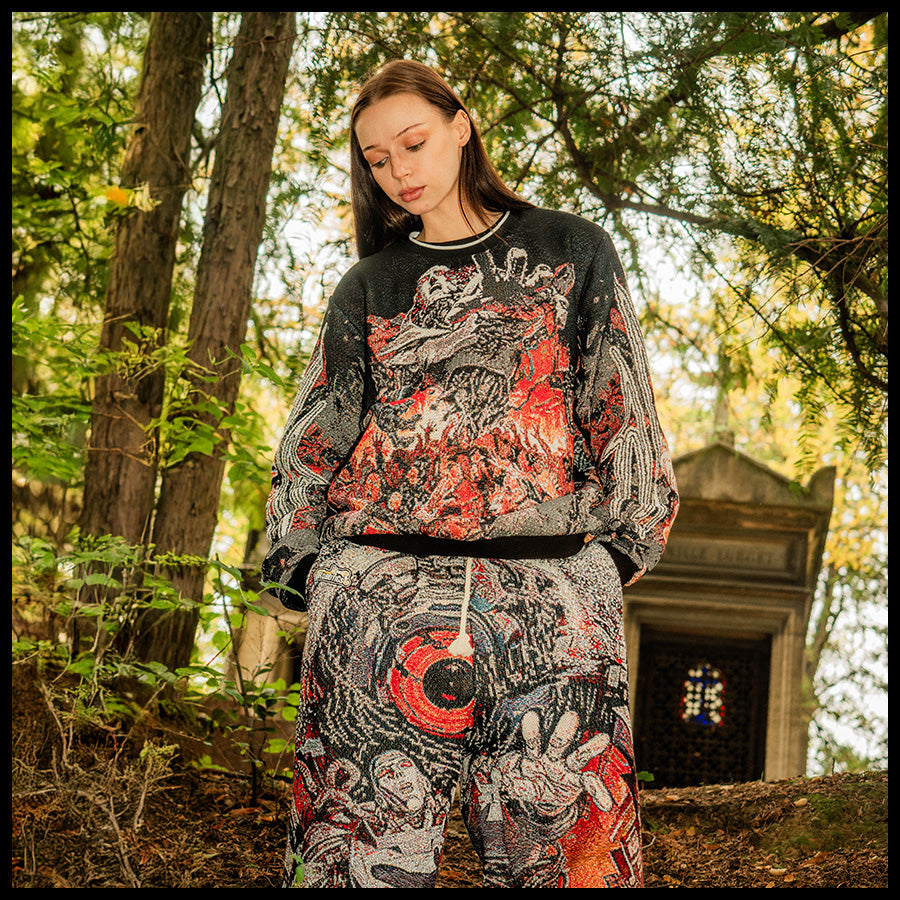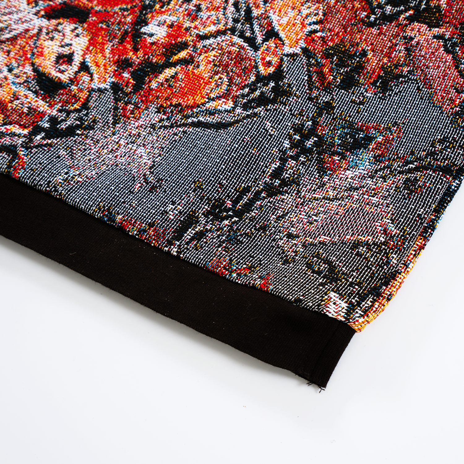 Tech specs: premium jacquard woven tapestry fabric (410gsm polycotton), embroidery @front, suede mini-ribbing (at bottom) | | | 100% wool ribbings @ sleeves (w/ intarsia logo at cuffs) & neck +++ satin silk lining (inside *fully*).